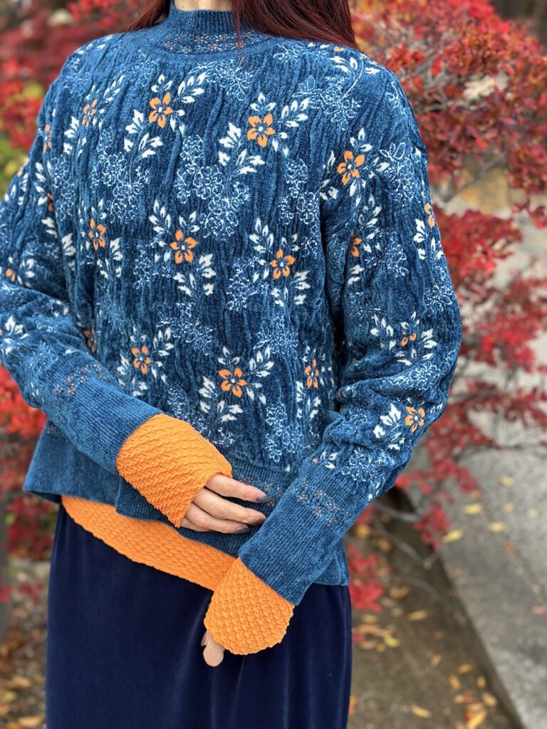 Mame Kurogouchi(マメクロゴウチ)Floral Motif Chenille Knited Topのご紹介です。2025.11.16|アイテム紹介