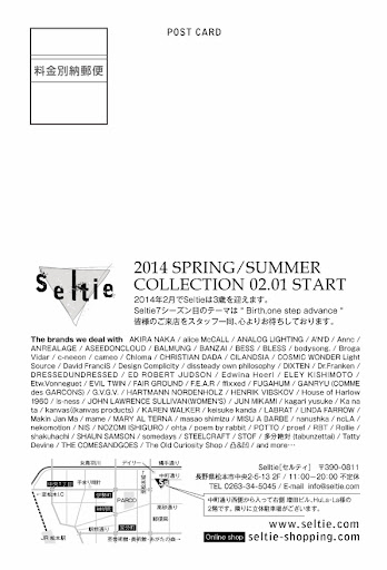 弊店ではシーズンの終わりに長期休暇をいただき、次シーズンへの準備をするようにしております。 1月でSeltie ’13A/Wシーズンは実質終了し、’14S/Sの準備をしてまいります。 以下、営業日 […]