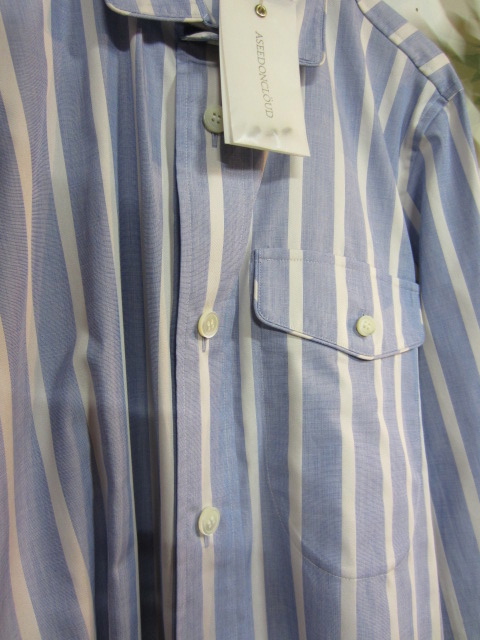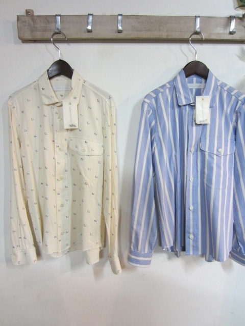 シープ柄のシャツ(¥23,000-税抜)とパジャマストライプシャツ(¥19,000-税抜)。