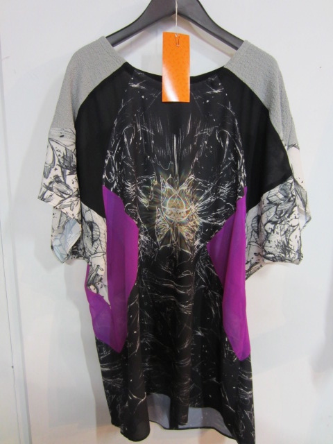 ランウェイでも印象的だった、ネオン柄のワンピース。