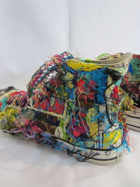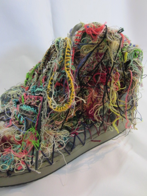 原型をとどめない程の無数の糸の束は、靴を飲み込み、侵蝕したかのよう。