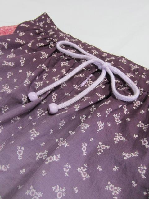 ウエストには細やかなギャザーが入っており、紐仕様で着脱も簡単。