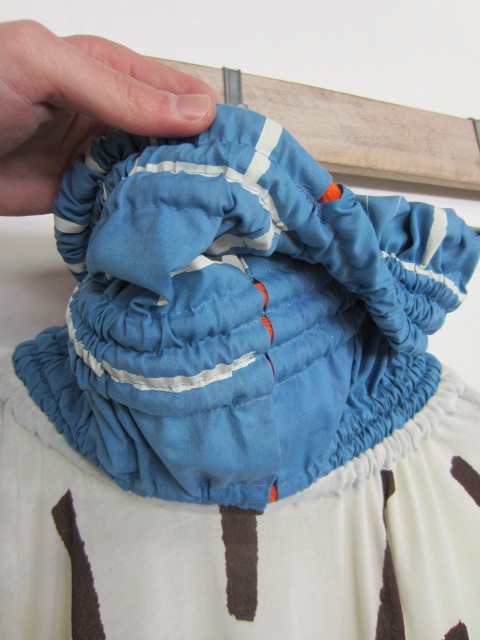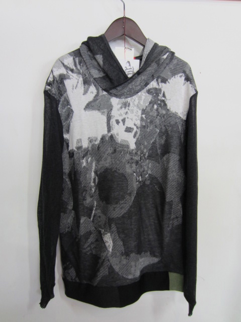 柄の入ったトップスに大きめのネックウォーマーがくっついた様なデザイン。