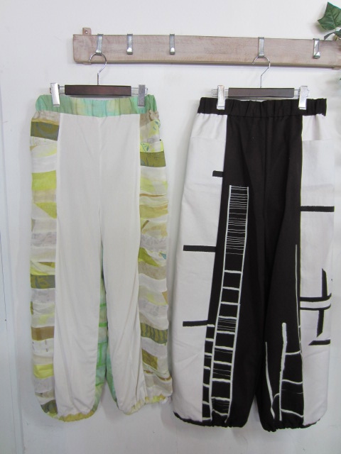 Men’sラインの柄ワイドパンツ。ダボッと穿く事が出来、薄着になったときにとくに活躍します。