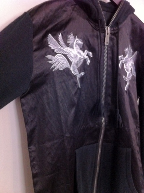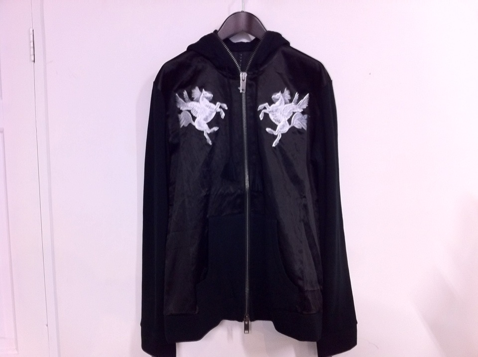 ナイロン生地で、袖、フード、裾はコットン生地の切替になっています。