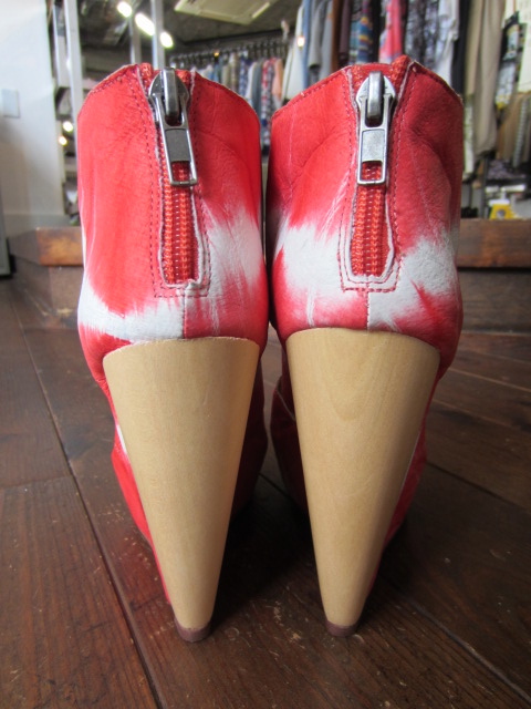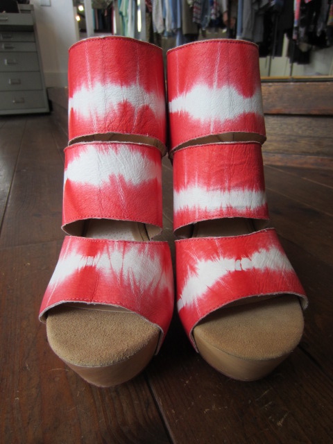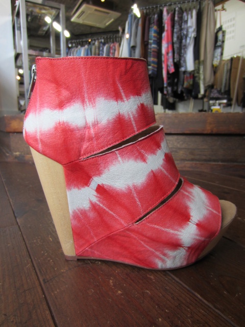 レザーにのせたタイダイカラーが美しいウェッジソールシューズ。