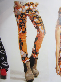 柄のロングパンツ。