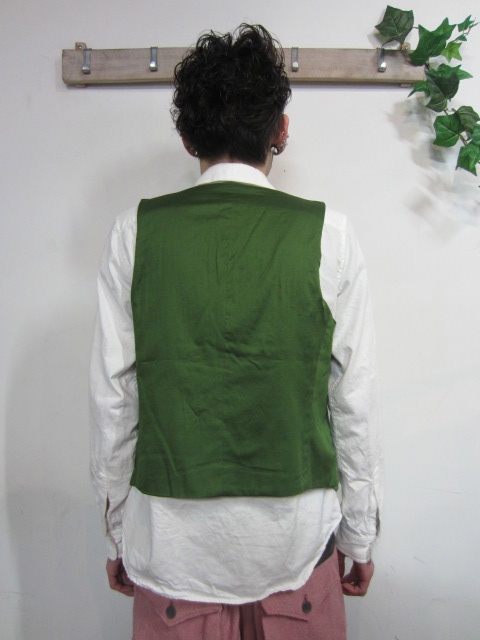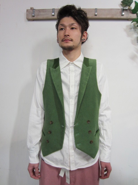ラフな印象のあるパイル地を綺麗なベストに仕立てるというありそうでなかった組み合わせ。