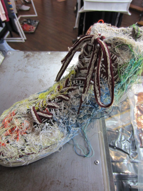 繭に覆われた靴はまるで生き物。
