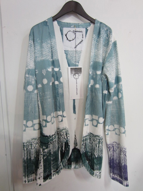 お取り扱いの店舗も少ないので、なかなか実物をご覧いただく機会は少ないかもしれませんが、1点1点をハンドワークにてシルクスクリーンプリントをしており、抽象画からくる唯一無二の世界観は素晴らしいです。