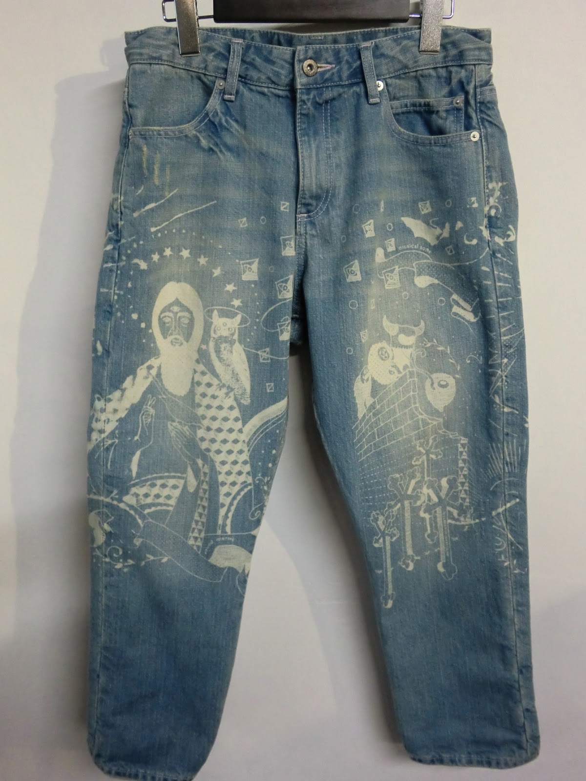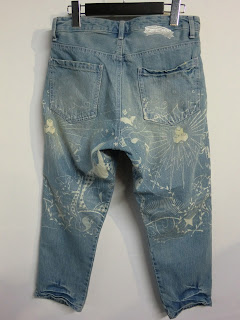 RBT今期の傑作デニムパンツ。ブリーチ加工により音神のデザインを表現したスペシャルな1本。股上が深くゆったりと穿いていただくことができ、ロールアップしてもらうと可愛いです。なんと言ってもこのクオリティでこのプライスは絶対お買い得!がんがん穿いてさらに自分らしい味を出していただきたいアイテムです。Mサイズ 在庫残り1点のみ。