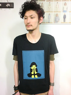 こちらは’08秋冬の『夢中』シーズンの名作。ブラックボディに、遠くを見つめる少女が映える1枚。これから先の季節の、インナーでも活躍しそうです。ネック周り、袖先、裾は全て切りっ放し仕様。サイズ1のみのお取り扱い。