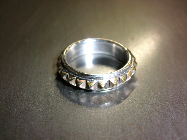 シルバーベースに、くすんだゴールドのスタッズの雰囲気が良いリングです。