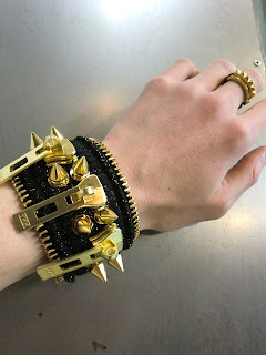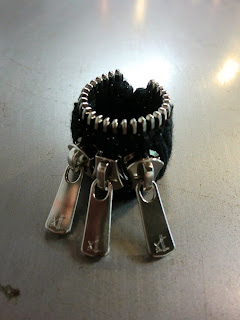 リブ素材なので見た目がハード過ぎず使えるリングです。大きなジップがアクセントに。