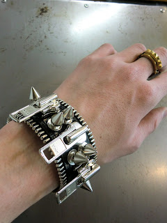 全てレザー素材のハードなブレスです。約3cmの太さなので女性にもオススメ。大きなジップがアクセントに。裏側(手首に触れる部分)も全てレザー仕様で、耐久性もあり末永く愛用できるアイテムです。2色展開。