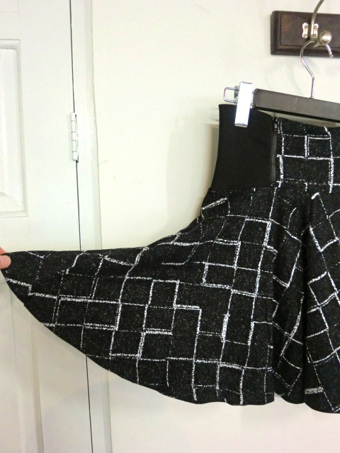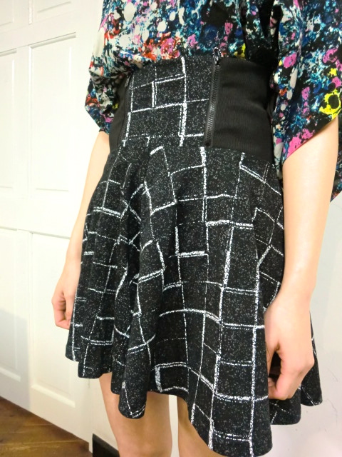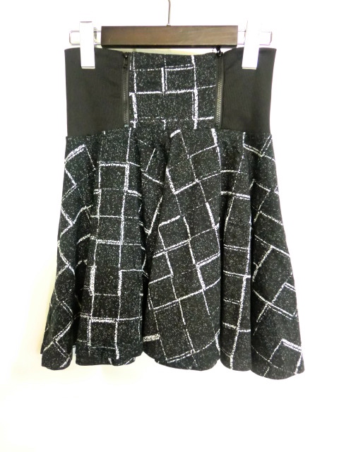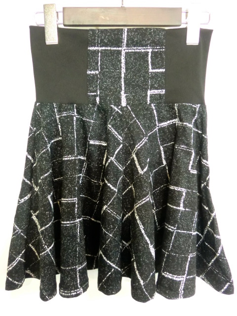 やや裾広がりなAラインのシルエットと主張しすぎない柄が素敵なスカートです。前には2本のZIP付き。ウエストは左右がリブになっており、伸縮性もあるのでサイズも選ばず穿き易いです。透け感も気になりません。Tシャツをインしてハイウエストにしても可愛いスカートです!サイズXSのみ。