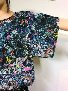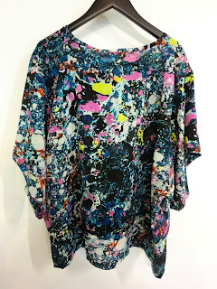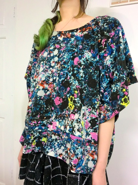 さらっとしたポリエステルの生地感と様々色が混じり合った柄が素敵なBig Tシャツ。