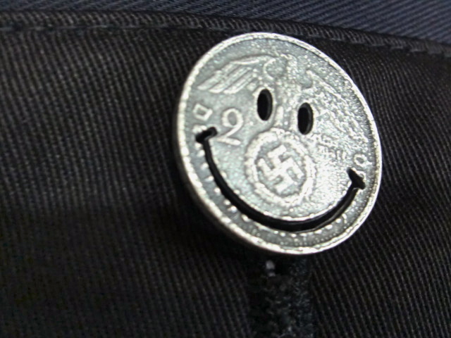 ドイツ軍の硬貨をリメイクしたスマイルボタン付き。HIRO Dickiesタグ付き。