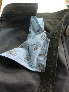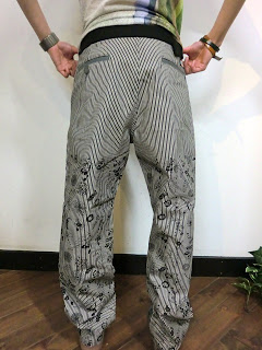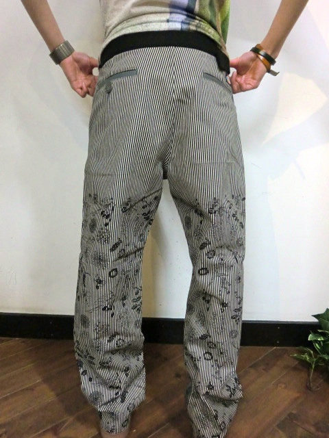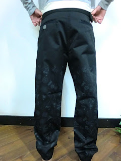 表、裏の股下から「今日という日の花を摘め」をイメージした総柄プリントが施されています。ウエストはマジックテープによる脱着式で比較的自由に調節が可能。