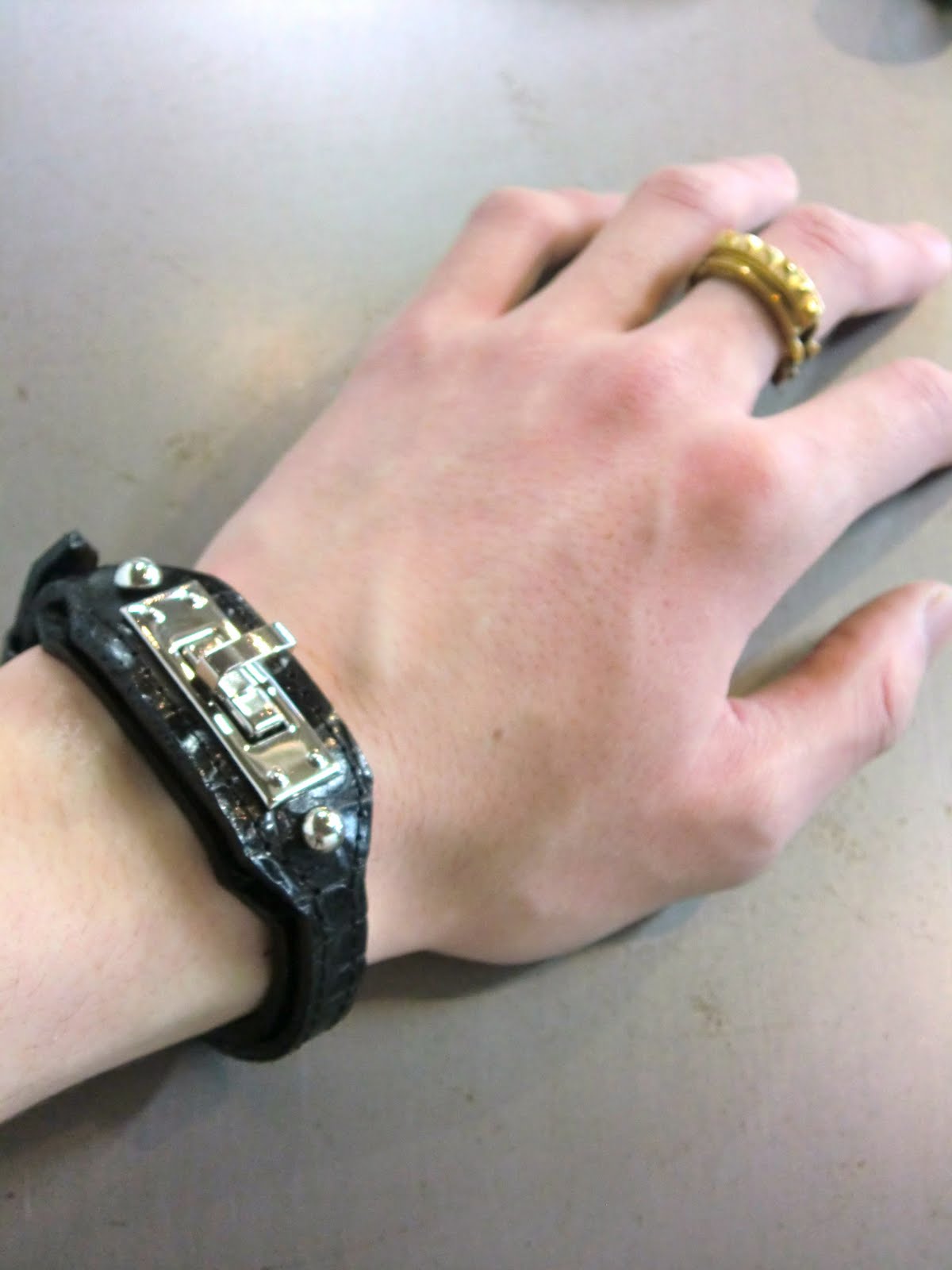 オールレザーの質感とメタルの雰囲気が良いブレスレット。