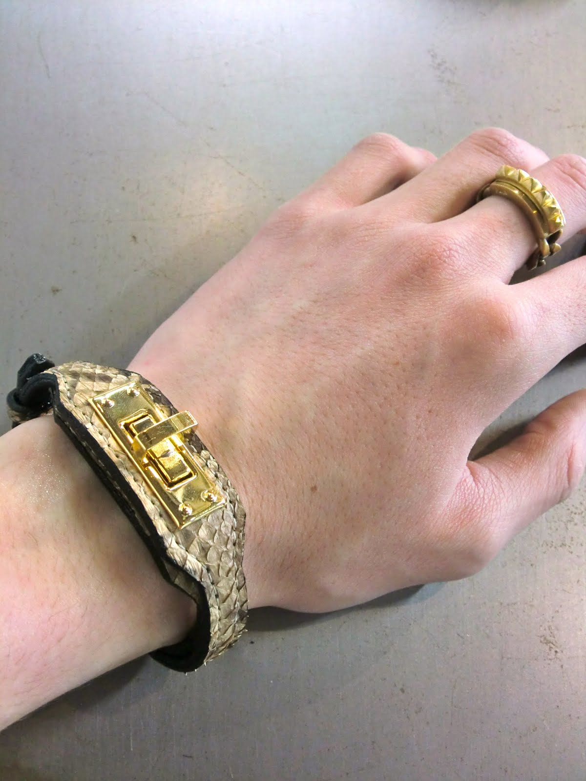 表地がリアルパイソン、裏側がレザーの高級感あるブレスレット。