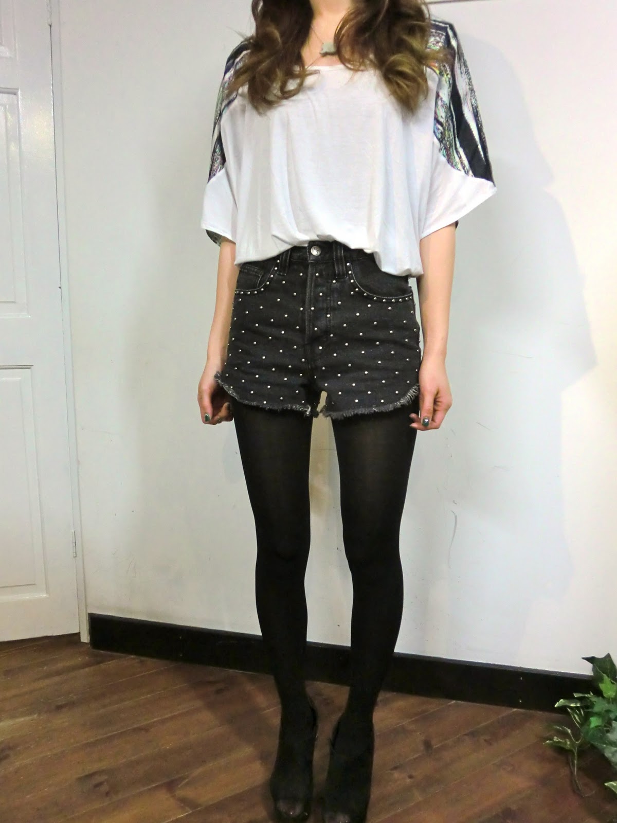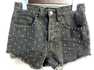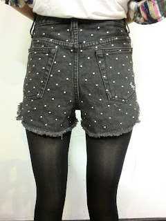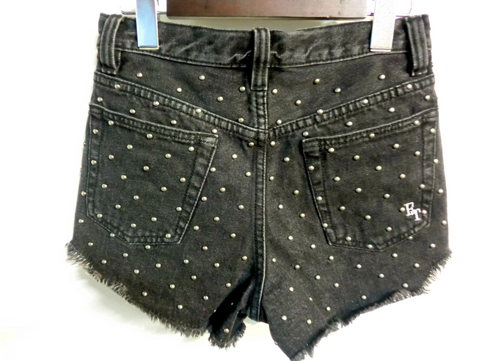 グレーがかったブラックのカラーにスタッズの雰囲気が最高です。裾はロールアップして更に短く穿いても可愛い。2サイズ展開。スタッズは裏からも打ってありしっかりと付けられています。