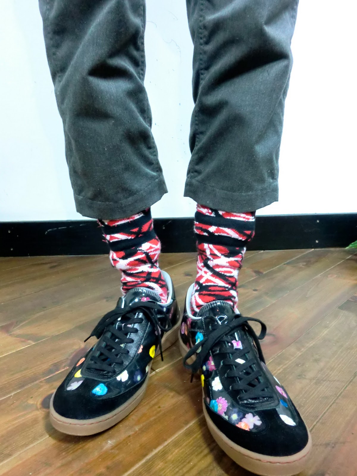 ※履いていくにあたり押し花の色味が下の生地に色移りする場合がございますが、変化またはデザインによる味わいということをご理解の上、予めご了承下さいませ。