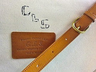 ベルトはベジタブルタンニンレザーを使用。CLSの落書き風プリントと革ラベル付き。