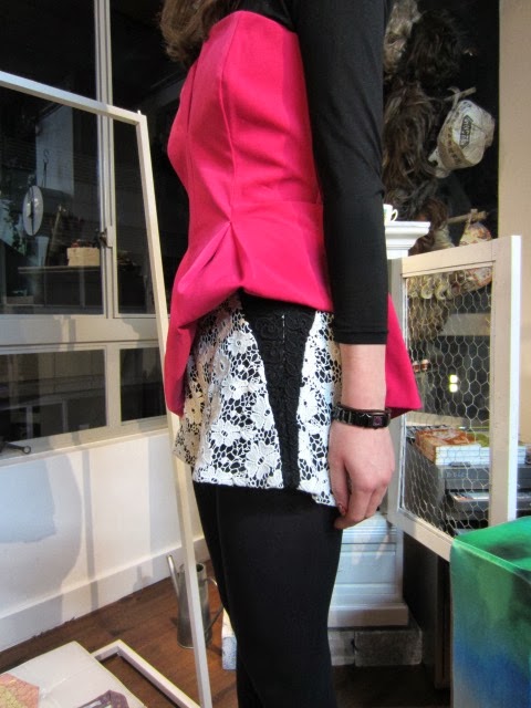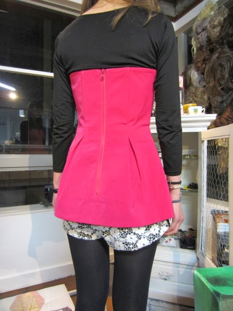 ベアトップのフレア感を意識してショート丈のレザーでバランス良くしました。