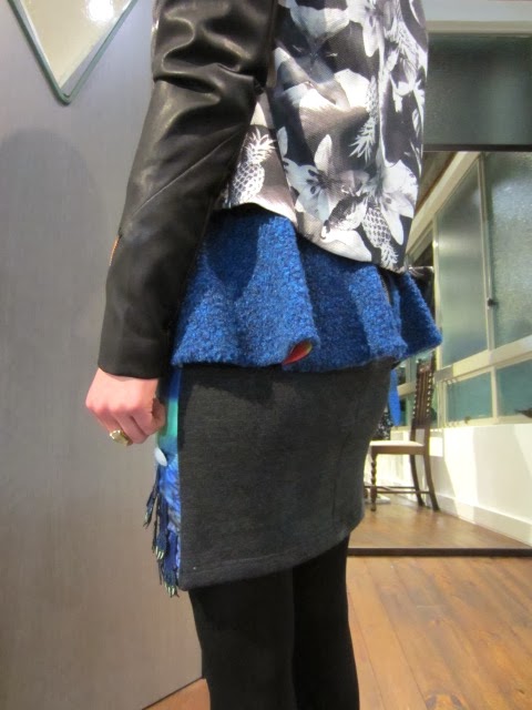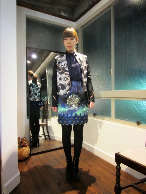 ハイウエストなスカートなのでジャケットはショート丈をチョイスしてバランス感良く。