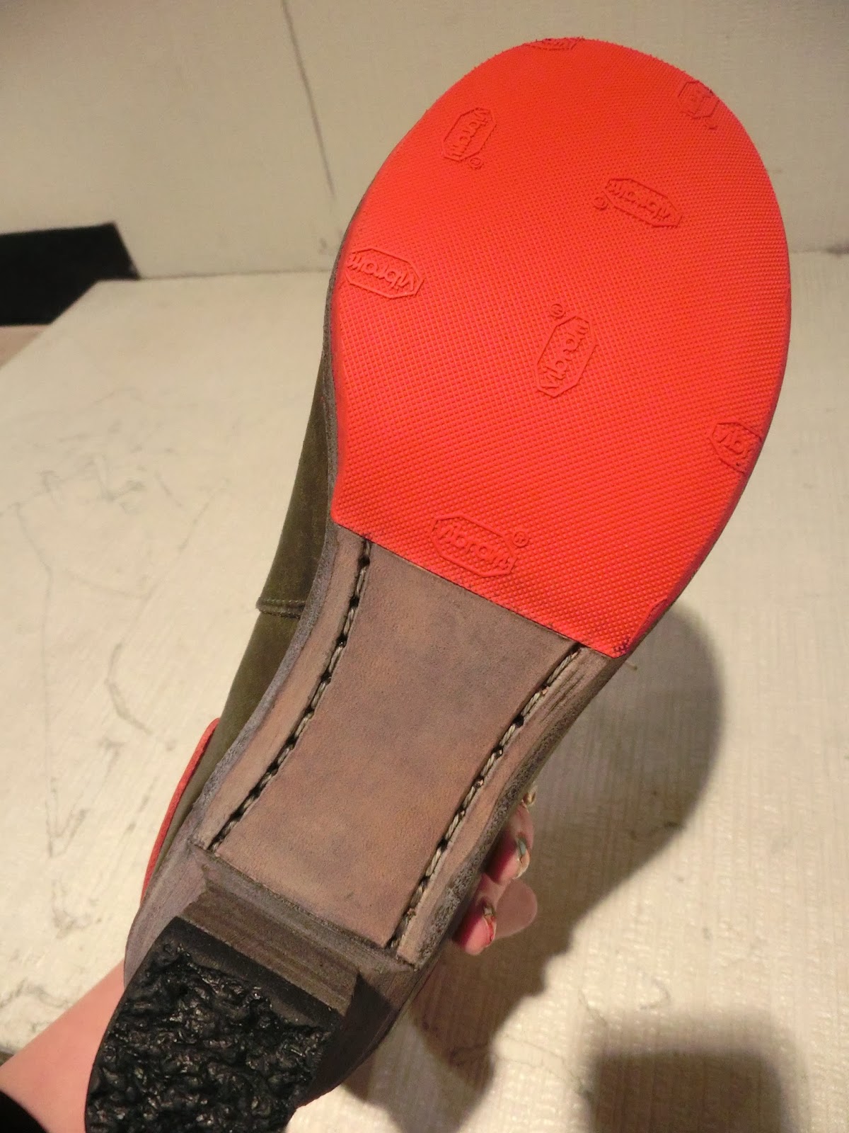 底には赤い『vibram』ソールが貼ってありますので沢山歩いても底の痛みの心配はございません♪
