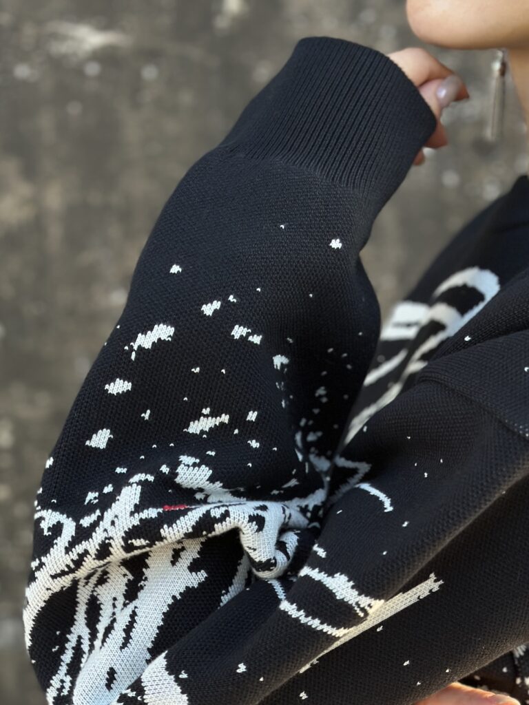 “textileとtextの語源は同じ” というところから着想を得て描かれたドローイングのコットンニットは、スウェットのような仕上がり。
