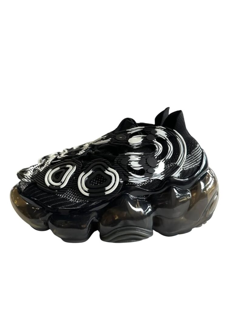 ニットアッパーの上にMOOPIEの特徴的な足跡を象ったPVC製のパーツが付いており、靴のアッパーとアウトソールの境界線をぼかし、上下がツイストしたような雰囲気を表現したMOOPIE INVERTのメンズサイズのご用意もしております!
