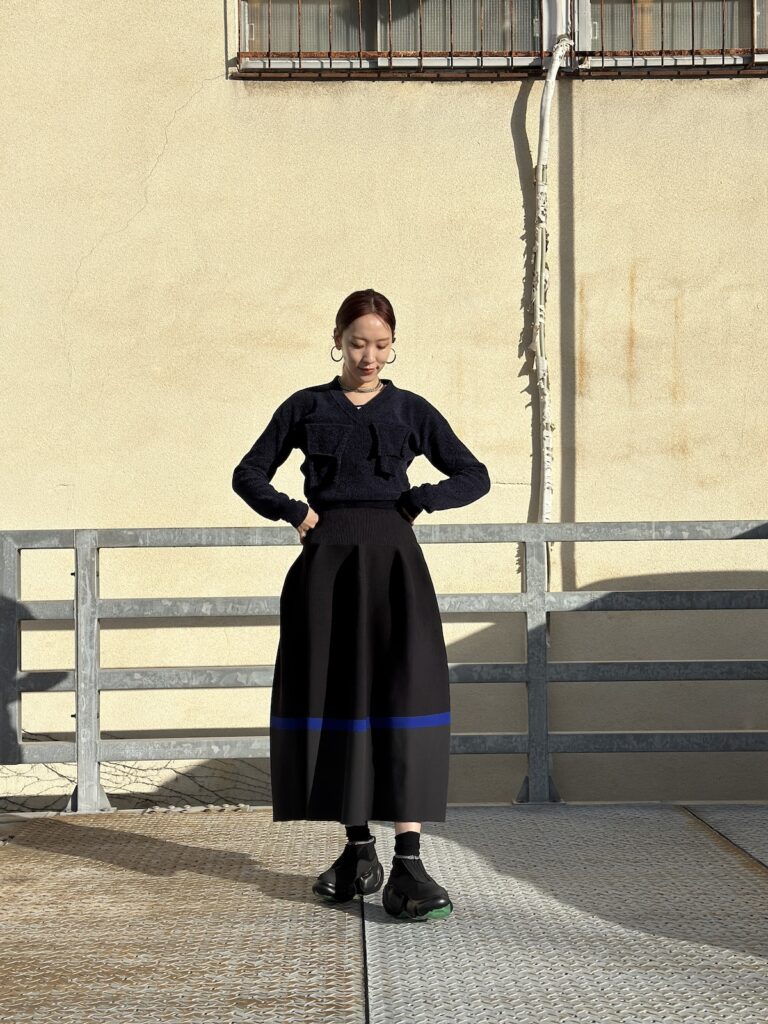 本日はkotohayokozawa(コトハヨコザワ)のVネックニットとCFCL(シーエフシーエル)のポッタリースカートのご紹介です。