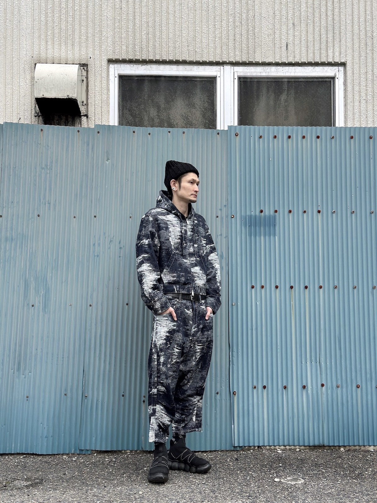 その中から本日はTAAKKデニムの新型である、デニムフーディとサルエルパンツのご紹介です!