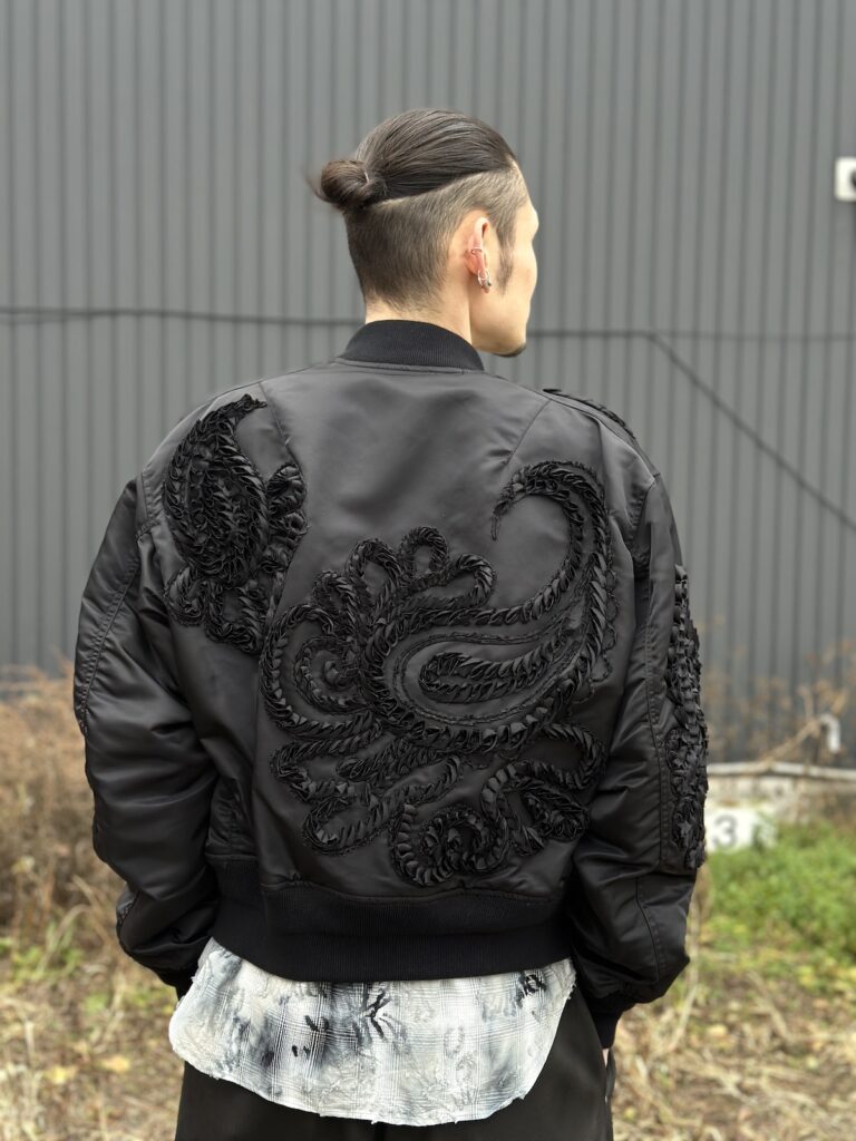 ブランドを象徴する、彫刻のような刺繍の施されたMA-1。