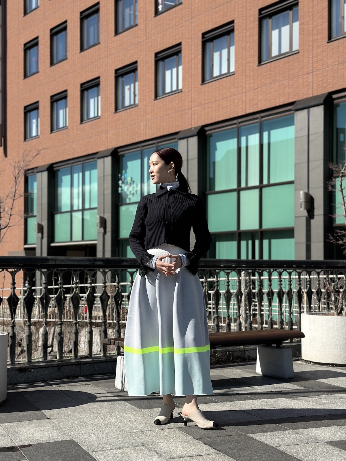 『CFCL』FLUTED LUCENT CROPPED SHIRT CARDIGAN (ブラック)