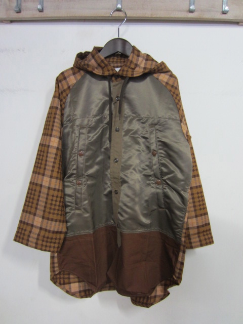 ウールチェック×MIXフード付きシャツ ¥37,800- (tax in)