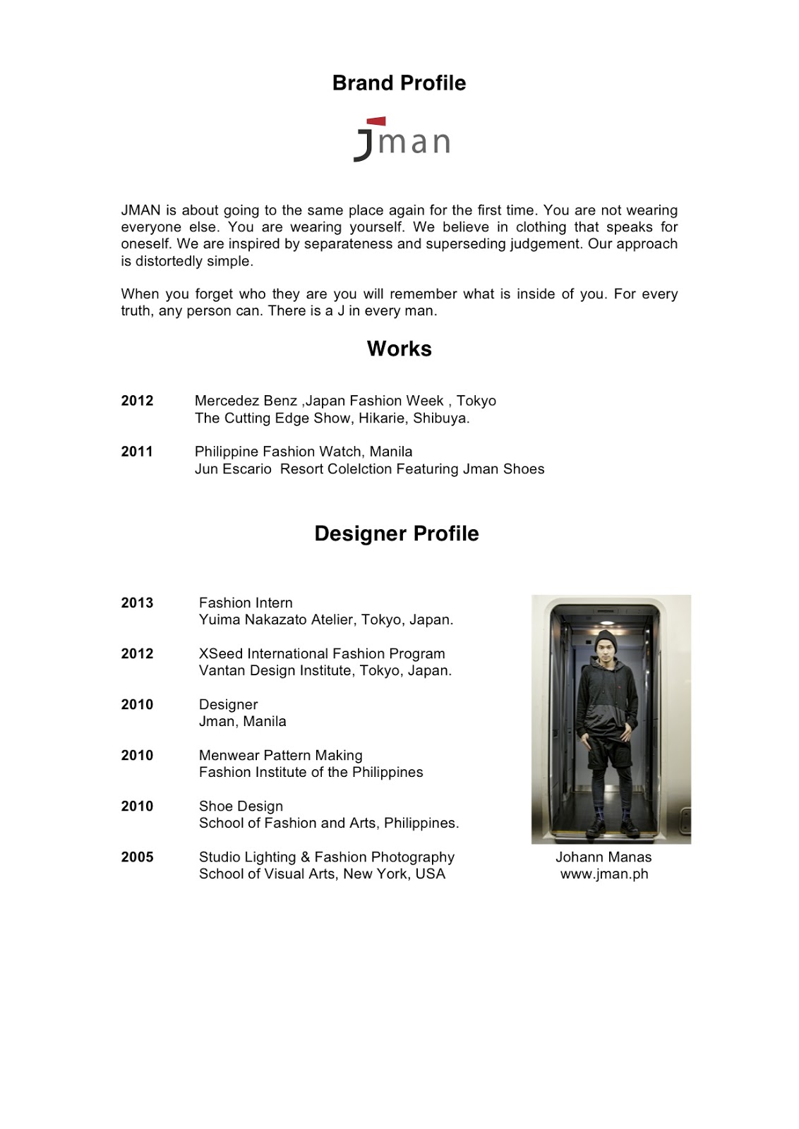 以下、英文となりますがブランドプロフィールとデザイナープロフィールです。