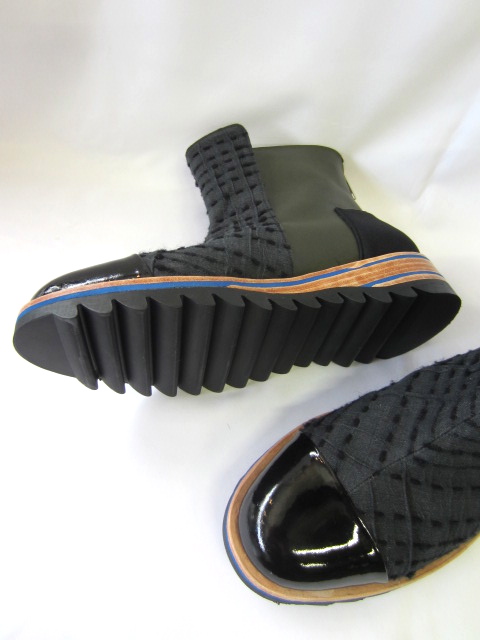 コットンジャガード生地や、パテント、カウレザーの組み合わせ。