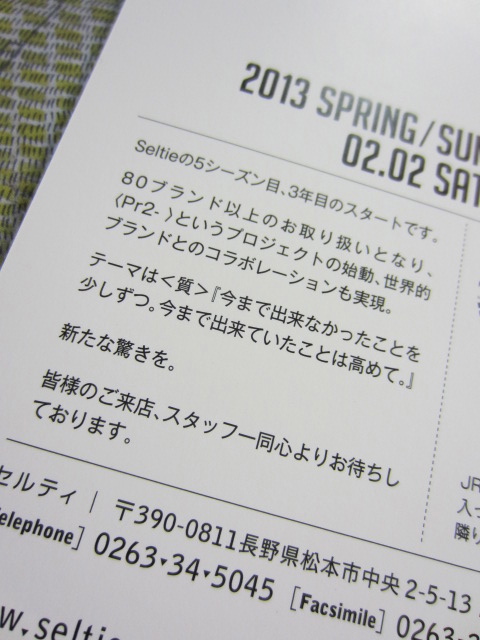 顧客様また通販をして下さっている全てのお客様、また店頭にお越しいただいた方にお配りしているDMに記載していた内容の最終段階です。(’13S/Sを締めくくるものとして)