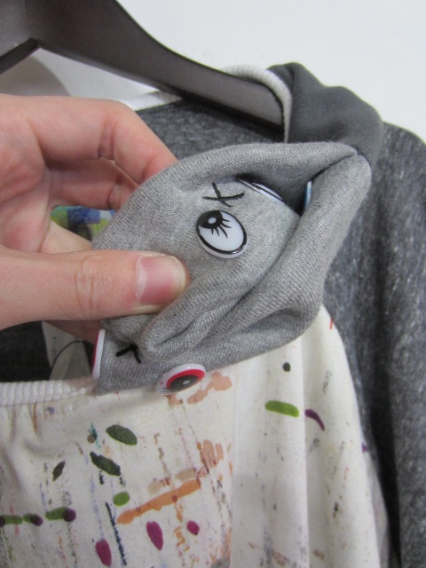 さとうかよ氏(MOZZZ)とのコラボレーションによる目玉付きのトップス。