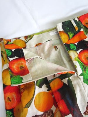 今回’13春夏で印象的だった野菜プリントを”総柄”にしたいと思い、配置から全て一から考えていただきオリジナル生地を制作していただきました。