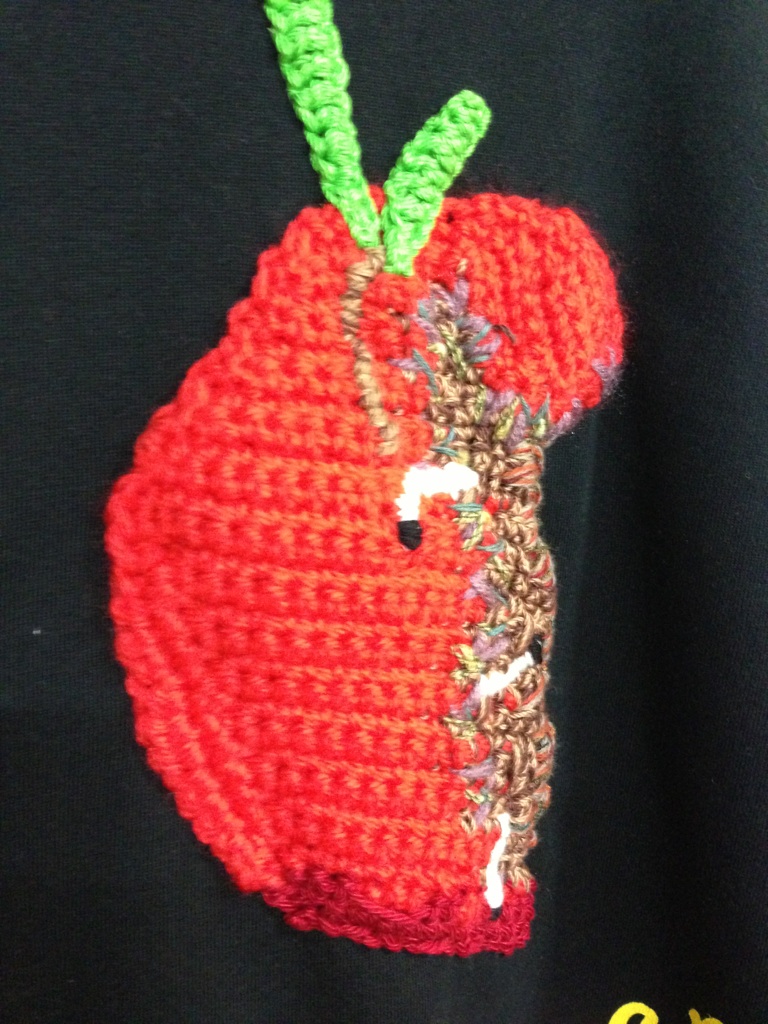 フロントの腐ったリンゴはハンドニットになっています。