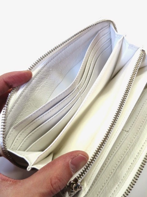 収納力は抜群で、札入れ(ポケット)6つ、小銭入れ1つ、カード入れ12枚。