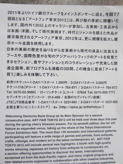 3月30日(金)〜4月1日(日)に東京国際フォーラムにてアートフェア東京2012が開催されます。