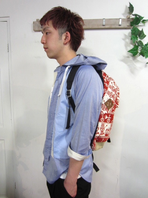 『GANRYU』オックスフォード切替フード付きシャツジャケット 36,750円(税1,750円)