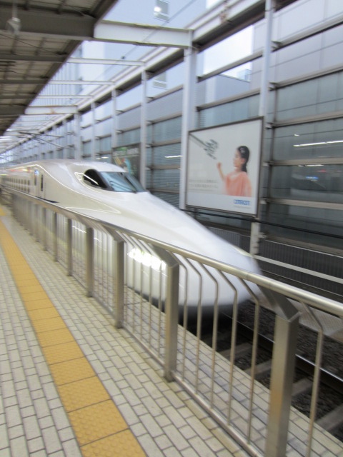 新幹線ってすごくお早いのね。シャープなお顔。